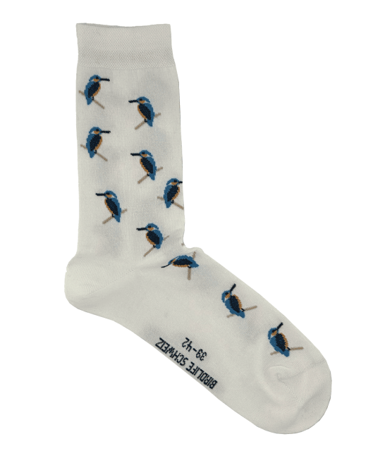 Die attraktiven BirdLife-Kindersocken mit Eisvogel-Sujet bieten dank flacher Zehennaht und druckfreiem Komfortbund besonders hohen Tragekomfort. Verstärkte Zehen- und Fersenbereiche sowie der Polyamid-Anteil sorgen für Elastizität und Langlebigkeit. Das Design entsteht im Atelier von Thomas Jakobson in Bern; produziert, konfektioniert und etikettiert werden die Socken in einer kleinen Manufaktur in Ostdeutschland. Material: 80 % Bio-Baumwolle, 18 % Polyamid, 2 % Elasthan.