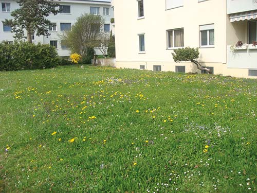 Im Siedlungsgebiet gibt es zahlreiche Möglichkeiten, blütenreiche Blumenrasen zu fördern, so insbesondere bei Mehrfamilienhäusern und privaten Gärten, wo sie als Spielplätze genutzt werden können.