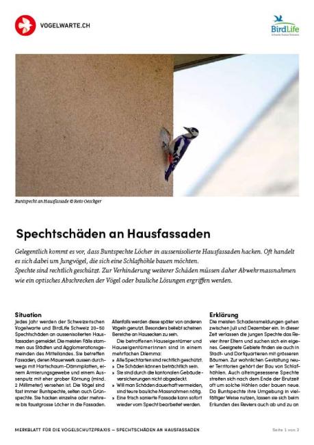 Wieso hacken Spechte Löcher in Hausfassaden? A4 Kopiervorlage