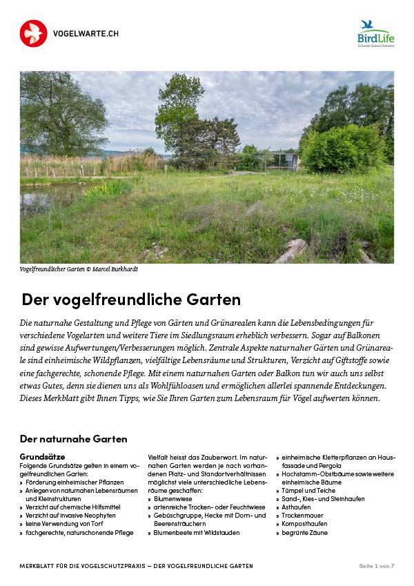 Wie gestalte ich meinen Garten natur- und vogelgerecht. A4 Kopiervorlage