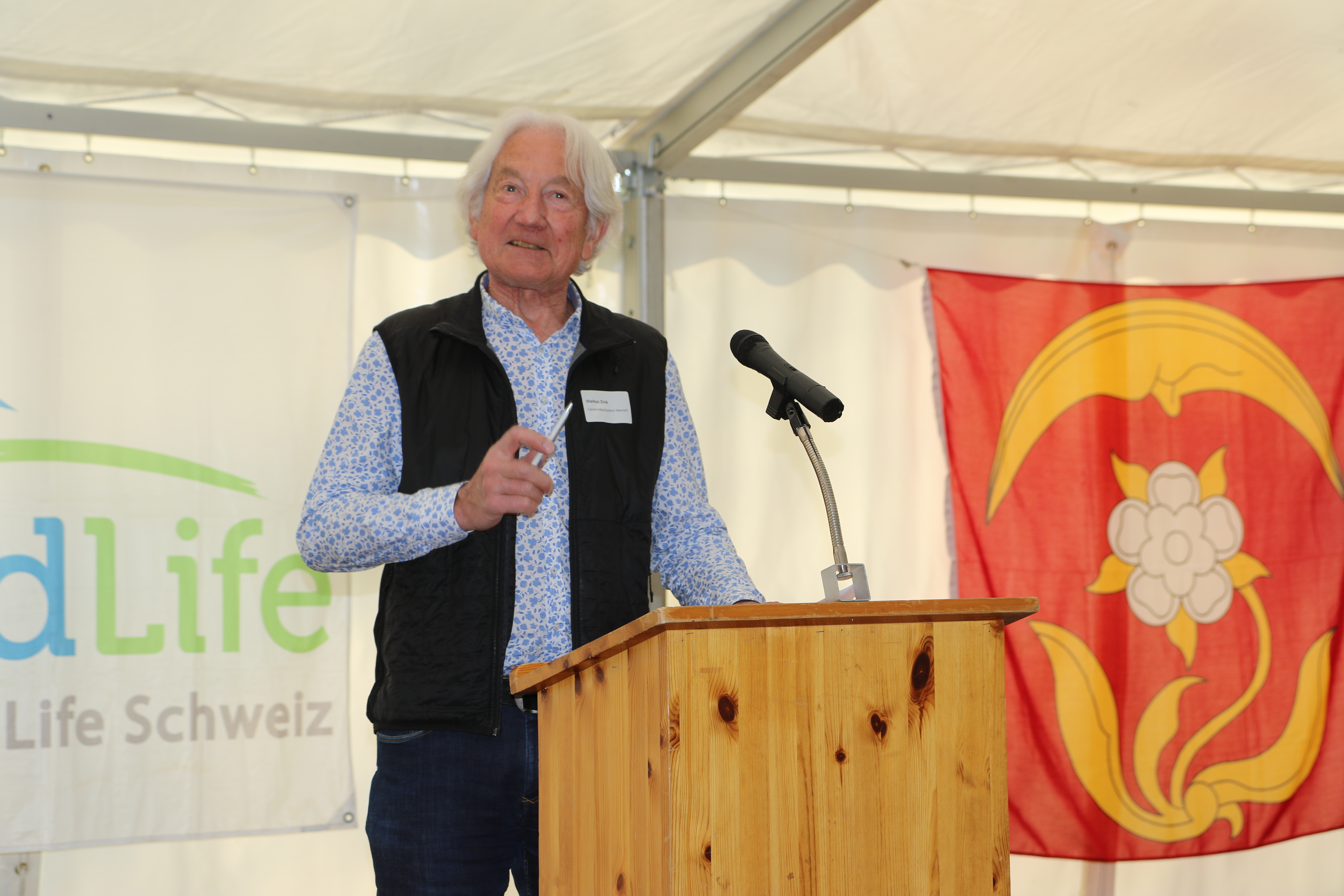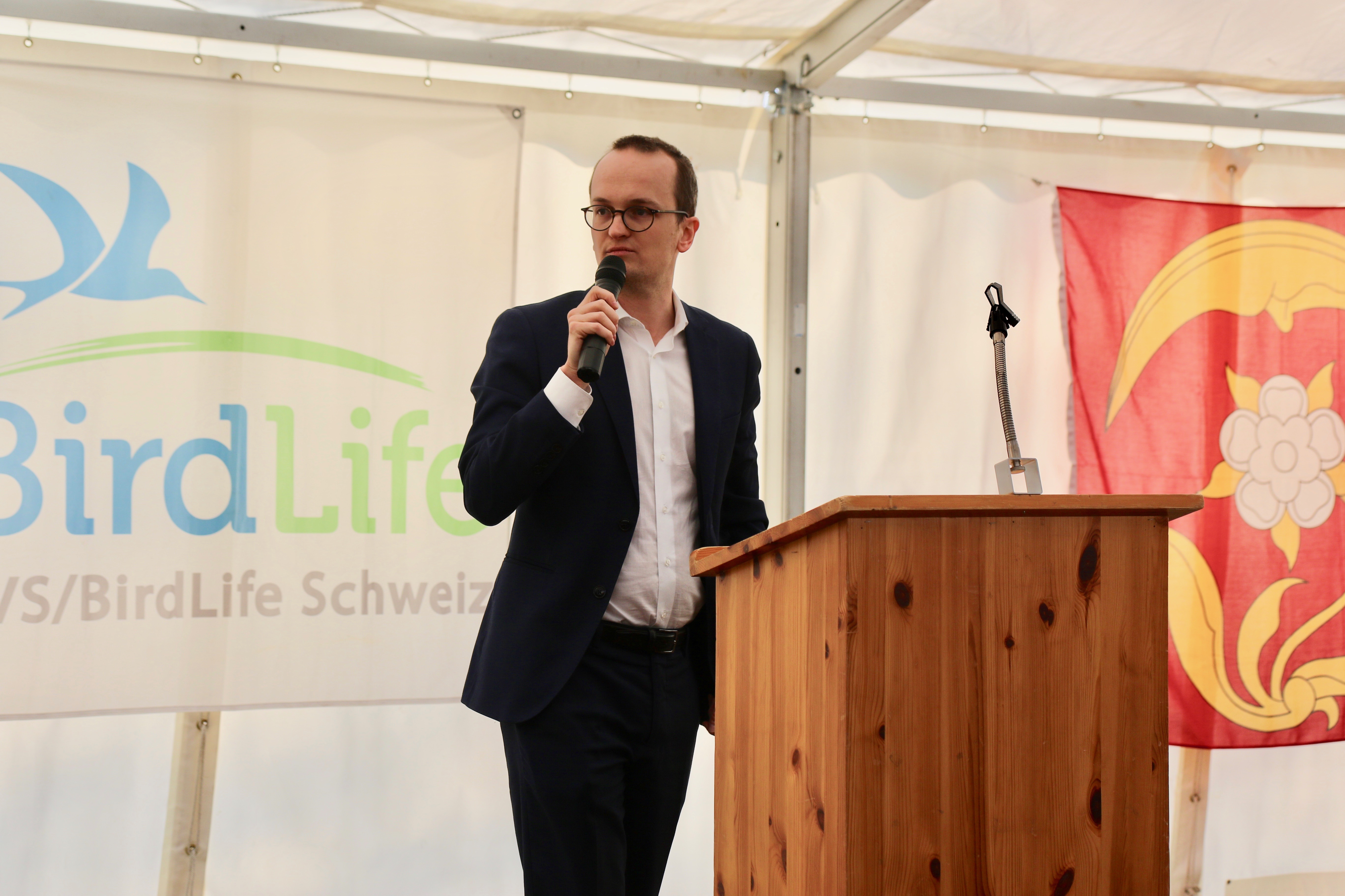 Auch der Gemeindepräsident von Neerach, Markus Zink, hält anlässlich der Eröffnung der Sonderausstellung eine Rede. Foto: BirdLife Schweiz