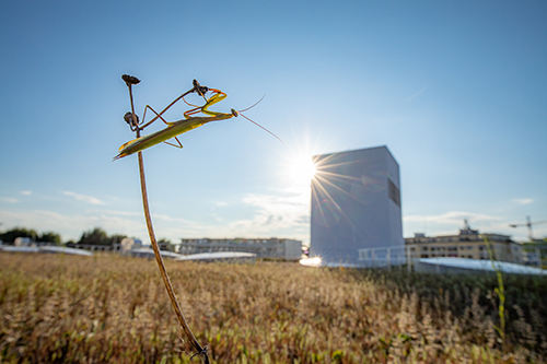 Auf diesem Flachdach kommt sogar die seltene Gottesanbeterin vor. Foto: ZHAW Das Bild darf nur im Zusammenhang mit dieser Medienmitteilung und unter korrekter Angabe des Fotografen verwendet werden. |