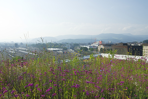 Dachbegrünungen bieten Pflanzen und Tieren zusätzlichen Lebensraum. Foto: ZHAW Das Bild darf nur im Zusammenhang mit dieser Medienmitteilung und unter korrekter Angabe des Fotografen verwendet werden. |