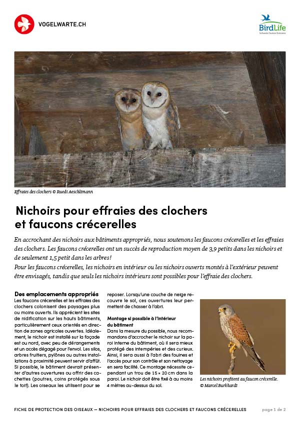 Comment installer et entretenir les nichoirs pour le faucon crécerelle et l'effraie des clochers. A4, 2 pages.