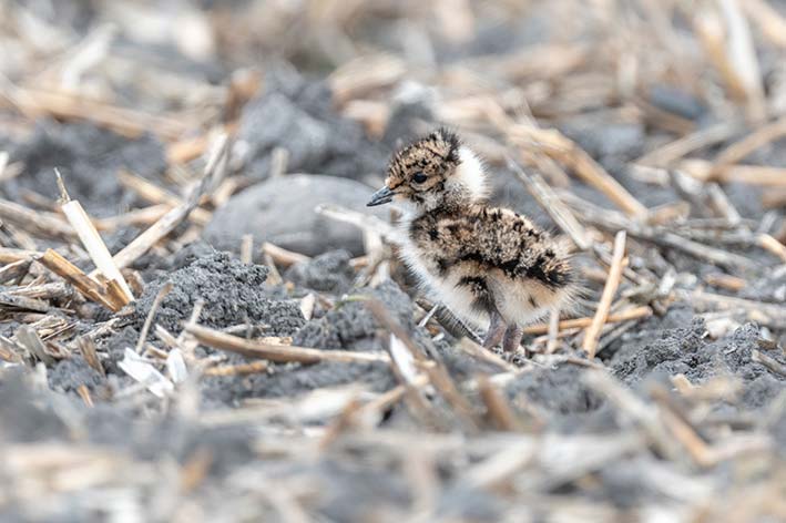 Les Vanneaux sont des nidifuges: dès leur éclosion, les poussins sont capables de marcher et de chercher leur nourriture tout seuls. Mais les premières semaines sont très dangereuses en raison du manque de nourriture, du mauvais temps ou de prédateurs tels que le Renard. Photo : Lucas Lombardo L'image ne peut être utilisée que dans le cadre de ce communiqué et avec mention exacte de l'auteur. |
