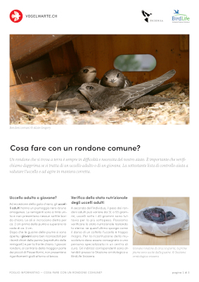 Un rondone che si trova a terra è sempre in difficoltà e necessita del nostro aiuto. È importante che verifichiamo dapprima se si tratta di un uccello adulto o di un giovane. La sottostante lista di controllo aiuta a valutare l’uccello e ad agire in maniera corretta.