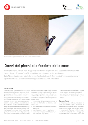 Occasionalmente, i picchi rossi maggiori fanno buchi nelle facciate delle case con isolazione esterna. Spesso si tratta di giovani uccelli che vogliono costruirsi una cavità per dormire.