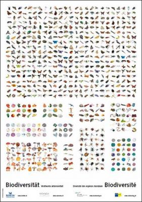 Illustrazione della biodiversità del mondo. Poster grande nel formato 70 x 100 cm.