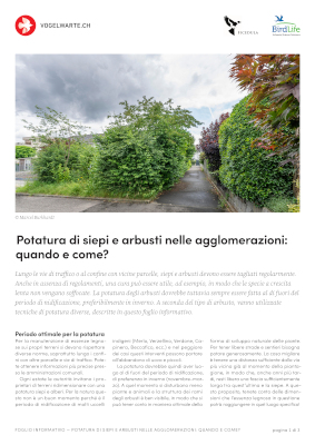 Lungo le vie di traffico o al confine con vicine parcelle, siepi e arbusti devono essere tagliati regolarmente. Anche in assenza di regolamenti, una cura può essere utile, ad esempio, in modo che le specie a crescita lenta non vengano soffocate. La potatura degli arbusti dovrebbe tuttavia sempre essere fatta al di fuori del periodo di nidificazione, preferibilmente in inverno. A seconda del tipo di arbusto, vanno utilizzate tecniche di potatura diverse, descritte in questo foglio informativo.